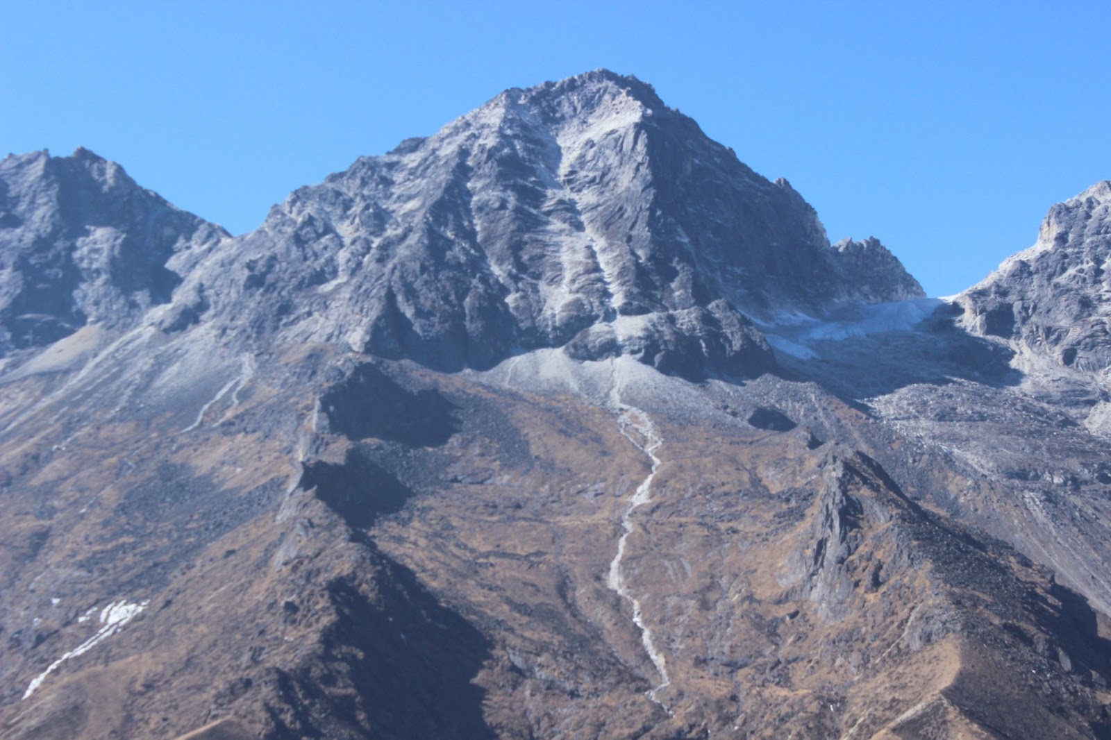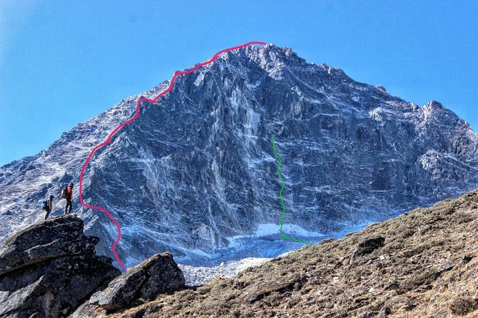 Mt. Luza is located in the Khumbu region at an elevation of 5,726 meters above sea level. This pyramidal peak was virgin until December 16, 2020, and was among those unclimbed summits of Nepal. The previously snow-covered mountain now shows more rocky exposures due to climate change. The mountain is in the same range as the holy Khumbi Yulha, continuing north toward Machermo Peak.