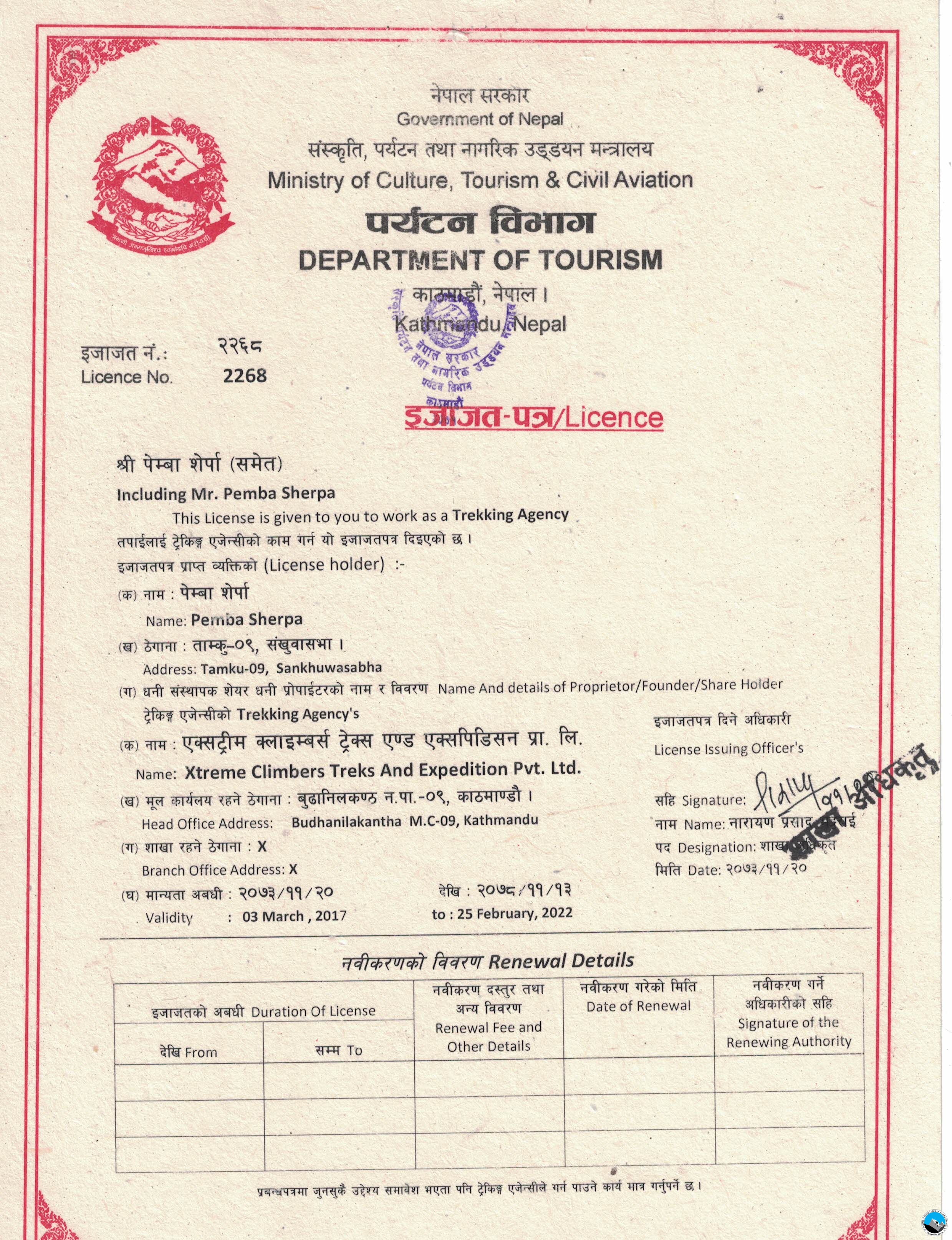 It is important to be aware that there are many companies running businesses with expired licenses; businesses that do not observe the legal formalities imposed by the country act. In the same manner, we have seen many examples of so-called trekking/touring agencies illegally operated by individuals & freelancers through their own personal websites.