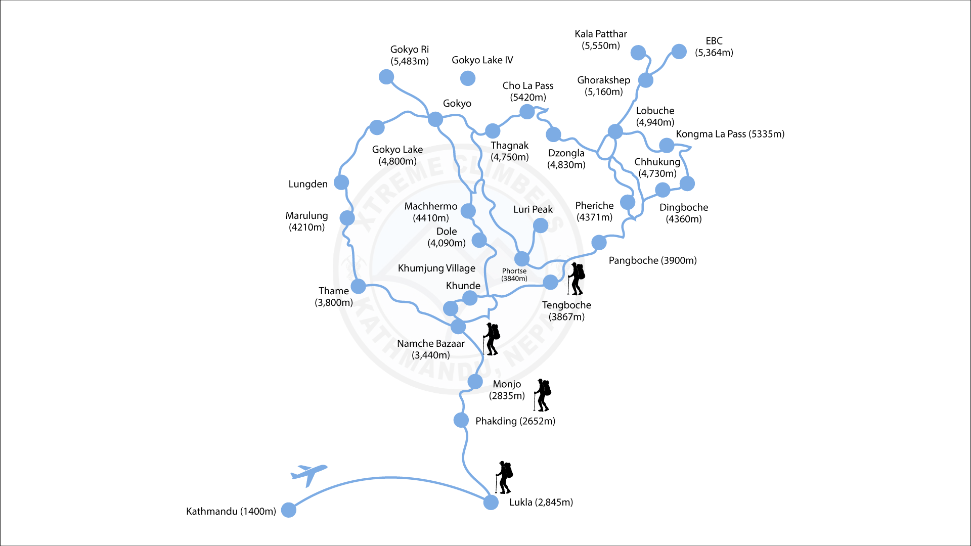 - Trek start/end: Lukla/Lukla
