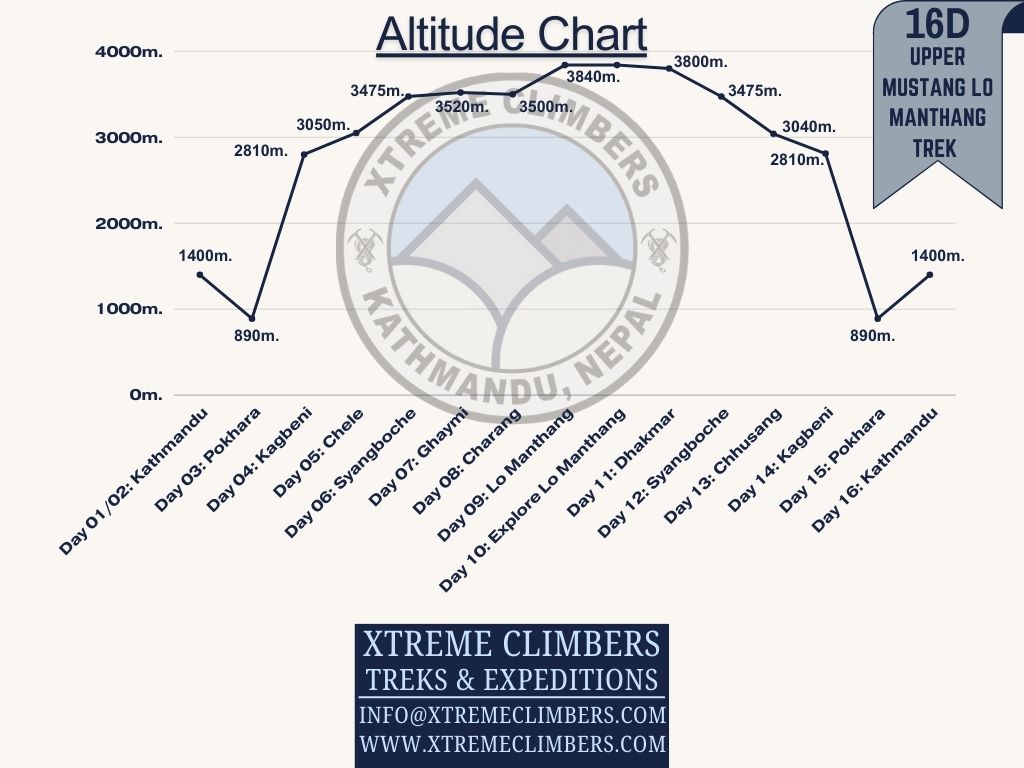 - Max Elevation: 3,840m. Lo-manthang